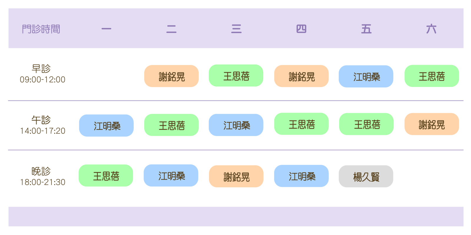 ♦ 謝銘晃醫師門診掛號規則如下: |