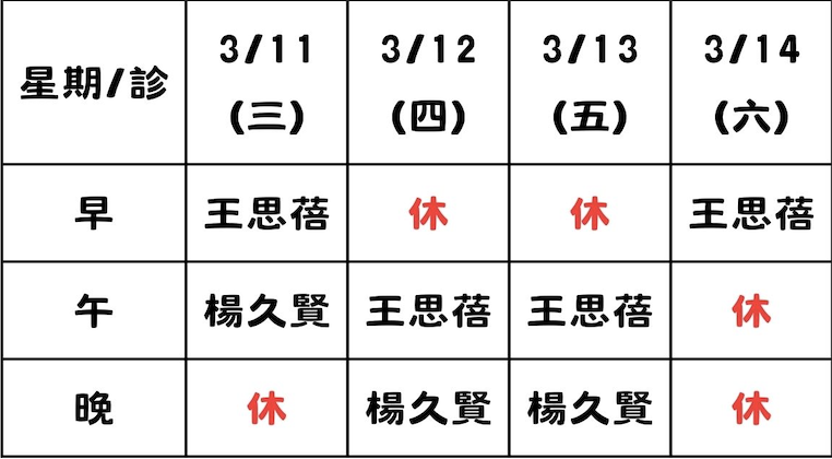 謝銘晃醫師3/11(三)~3/14(六)請假!